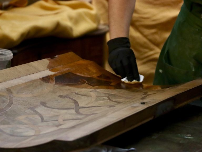 Fachgerechte Instandsetzung antiker und moderner Möbel. Dazu zählen Furnierarbeiten, Regenerierung und Erneuerung von Oberflächen, Farbangleichungen sowie konstruktive Maßnahmen zur Stabilisierung.